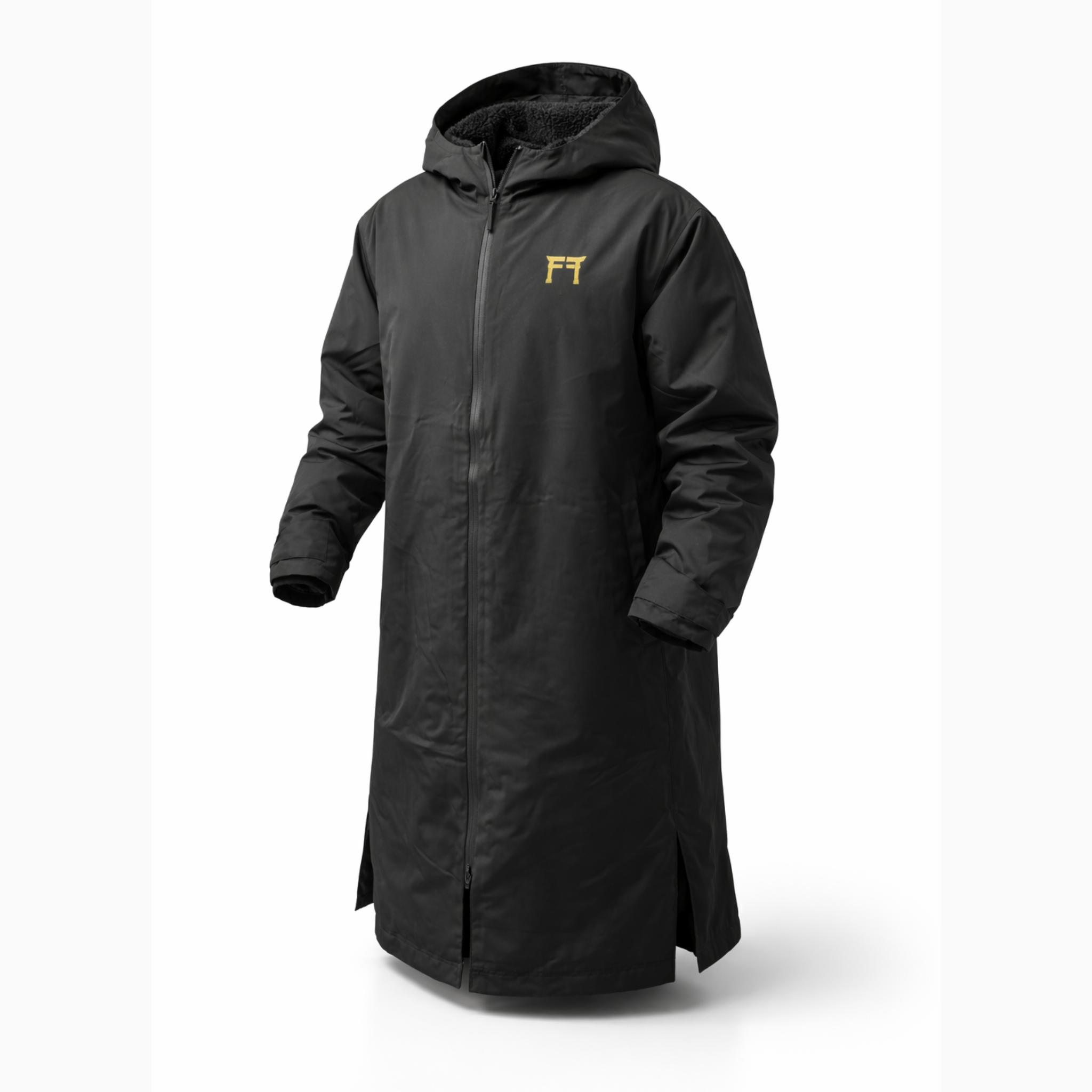 Sa coupe longue descendant aux genoux protège efficacement les jambes et le bas du dos, zones particulièrement exposées au froid dans les gymnases. L’isolation intérieure conserve la chaleur corporelle sans rigidifier le corps, permettant d’enfiler et retirer la parka rapidement, même en judogi.