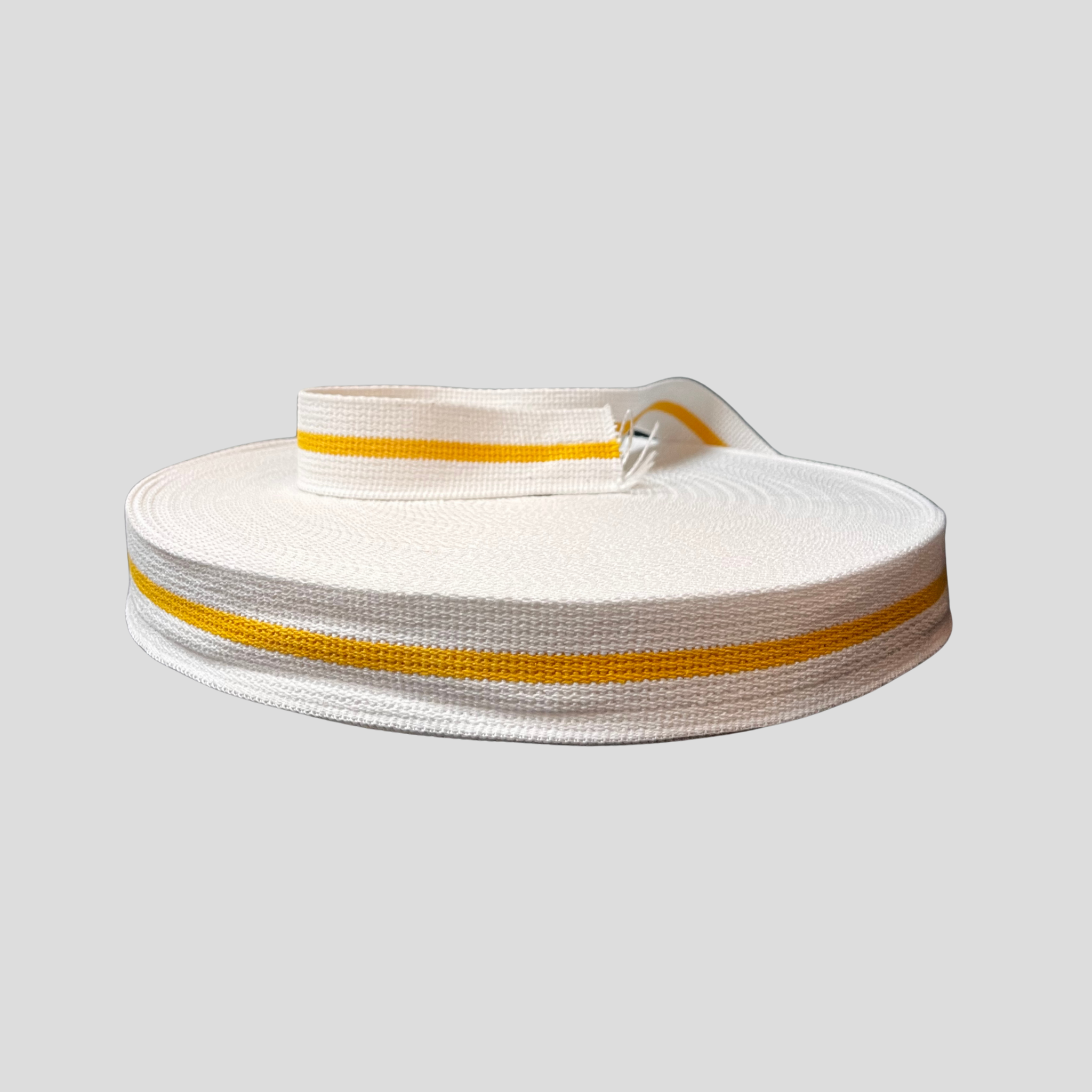 Grâce à ce rouleau de ceinture blanche 1 liseré de judo 50m, Made in Franc, vous pouvez confectionner une vingtaine de ceintures pour les judokas de votre club.