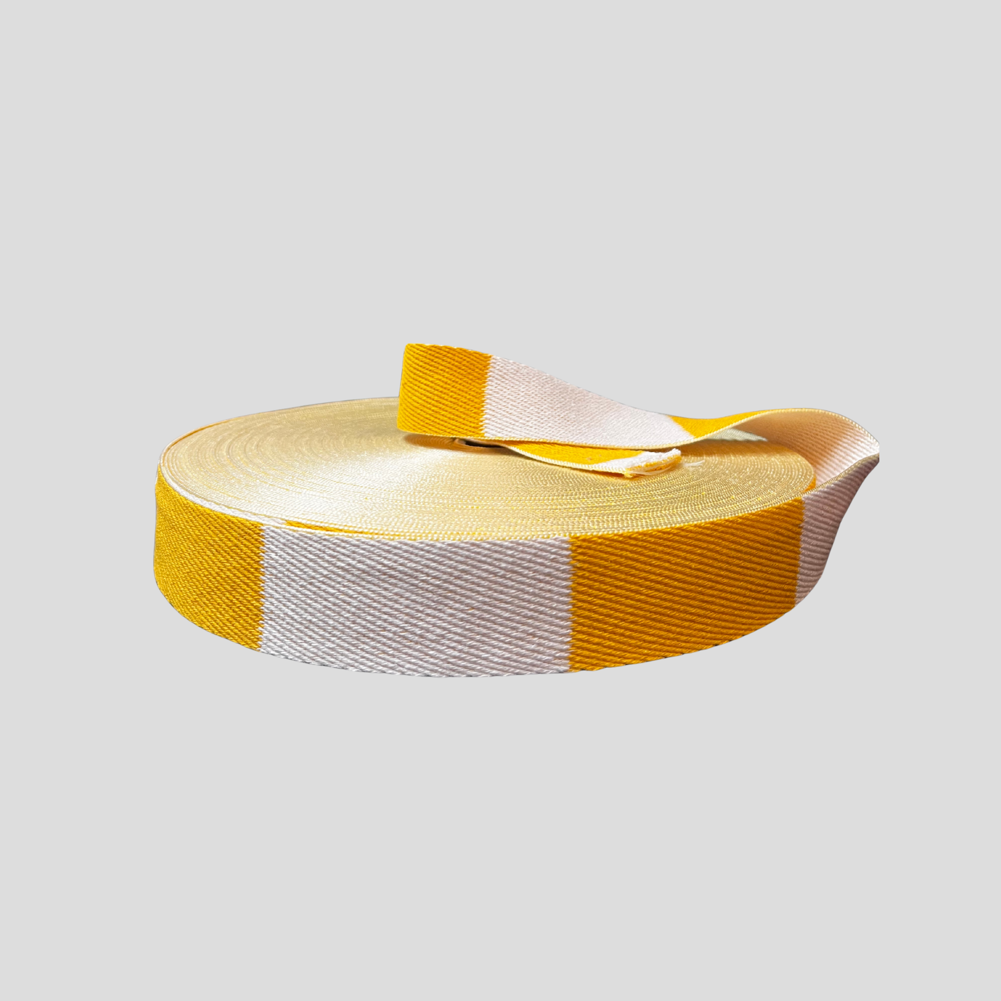 Grâce à ce rouleau de ceinture blanche-jaune de judo 50m, Made in Franc, vous pouvez confectionner une vingtaine de ceintures pour les judokas de votre club.