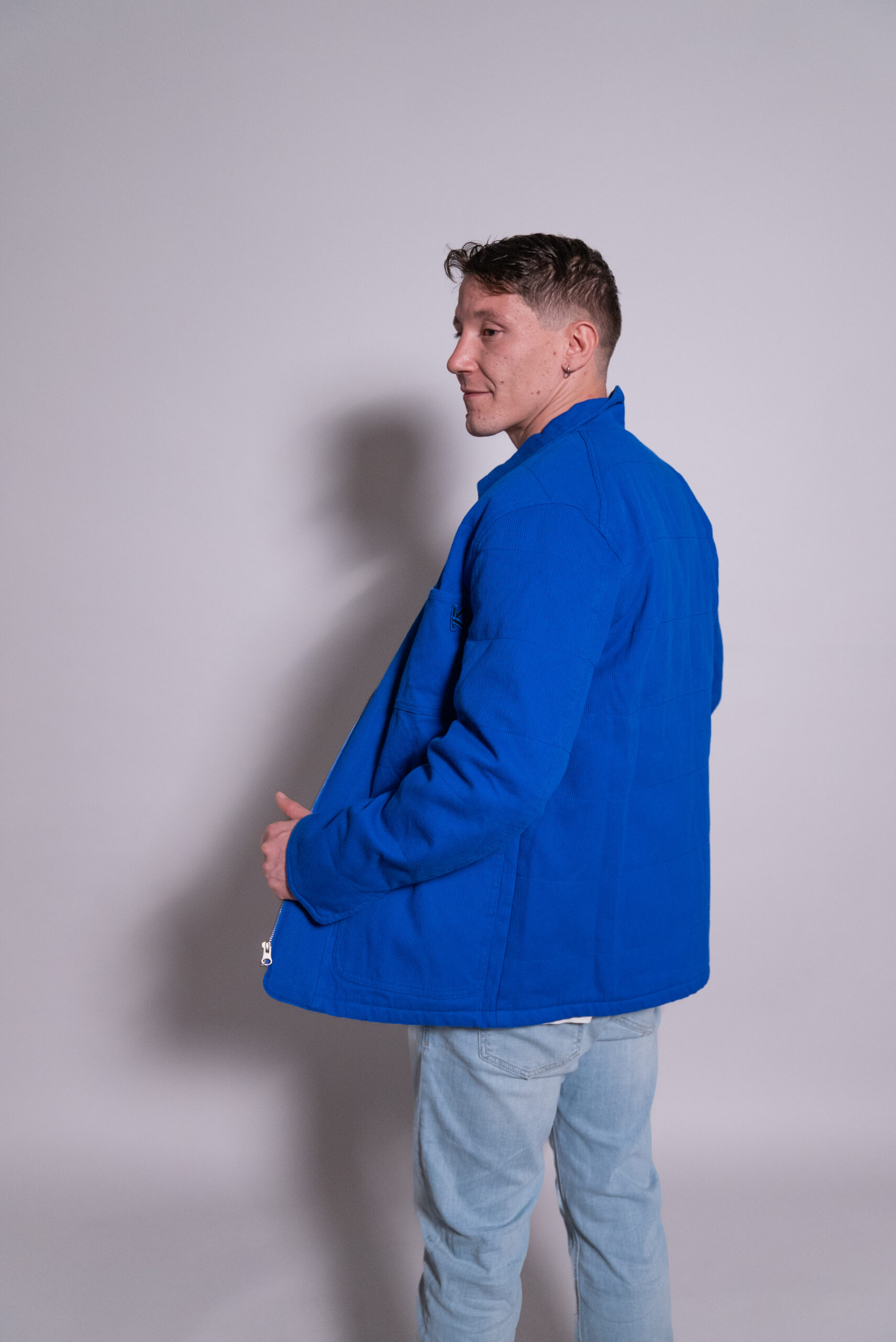 Inspirée des vestes de kimono de judo traditionnelles, notre veste en toile de kimono propose une coupe ample et confortable avec une ouverture ample au niveau des poignets. Les détails de couture et les finitions appliquées rappellent la méticulosité des kimonos de judo.